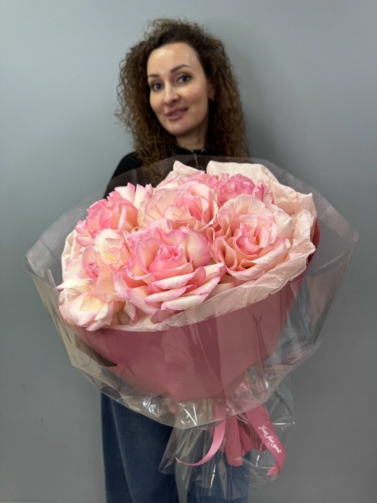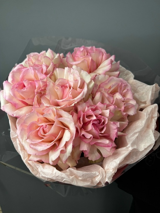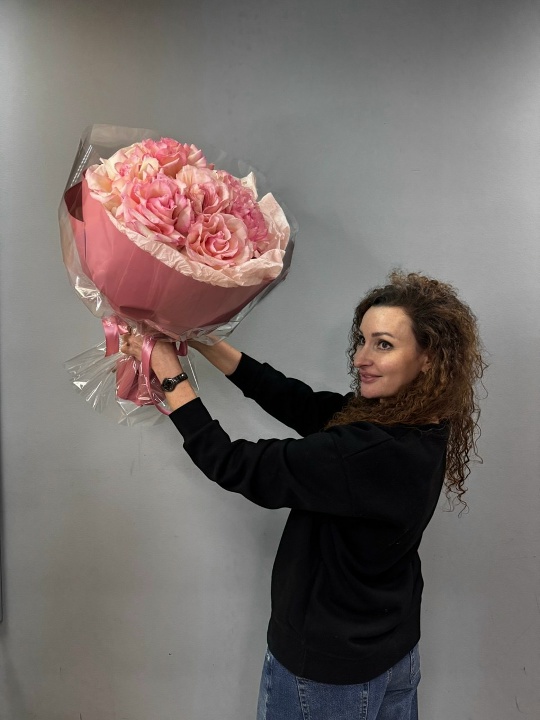 Монобукет из французских роз в дизайнерской упаковке