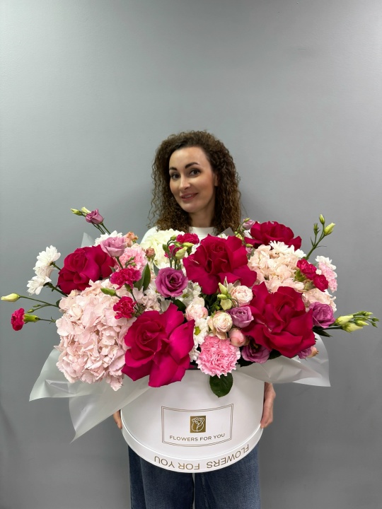 Состав: французские розы, гортензии, эустома, диантусы, кустовая роза