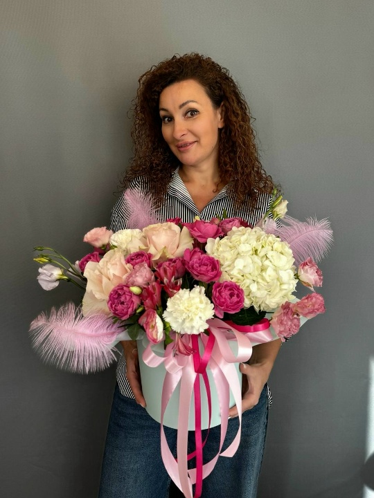 Цветочная композиция в шляпной коробке