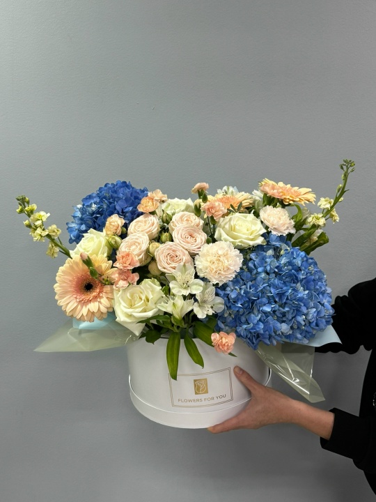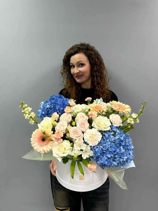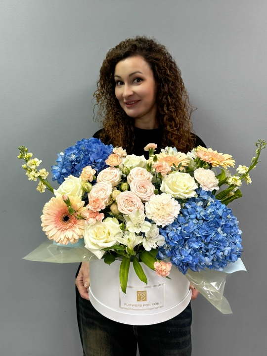 Премиальная цветочная композиция в шляпной коробке ко Дню Мамы